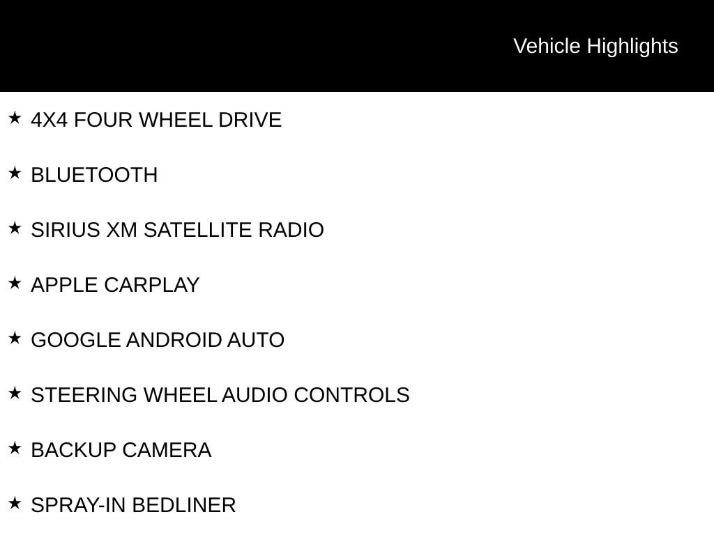 4X4 FOUR WHEEL DRIVE, BLUETOOTH, SIRIUS XM SATELLITE RADIO, APPLE CARPLAY, GOOGLE ANDROID AUTO, STEERING WHEEL AUDIO CONTROLS, BACKUP CAMERA, SPRAY-IN BEDLINER, TOW PACKAGE / TRAILER PACKAGE, RUNNING BOARDS, ALL WEATHER FLOOR MATS, LT SERIES, PREFERRED EQUIPMENT PACKAGE 1LT, SUSPENSION PACKAGE, Z71 OFF-ROAD PACKAGE, 17 MACHINED ALUMINUM WHEELS, 220 AMP ALTERNATOR, 6-SPEAKER AUDIO SYSTEM, AIR CONDITIONING, BLACK MIRROR CAPS, BRAKE ASSIST, CHROME FRONT GRILLE, COMPASS, DEEP-TINTED GLASS, DELAY-OFF HEADLIGHTS, DRIVER VANITY MIRROR, DUAL FRONT IMPACT AIRBAGS, DUAL FRONT SIDE IMPACT AIRBAGS, ELECTRONIC CRUISE CONTROL W/SET & RESUME SPEED, ELECTRONIC STABILITY CONTROL, ENGINE BLOCK HEATER, EXHAUST BRAKE, FRONT ANTI-ROLL BAR, FRONT CENTER ARMREST W/STORAGE, FRONT READING LIGHTS, FRONT RUBBERIZED VINYL FLOOR MATS, HEATED VERTICAL TRAILERING MIRRORS, HILL DESCENT CONTROL, LOW TIRE PRESSURE WARNING, MANUAL TILT-WHEEL STEERING COLUMN, OCCUPANT SENSING AIRBAG, OFF-ROAD SUSPENSION, OUTSIDE TEMPERATURE DISPLAY, OVERHEAD CONSOLE, PANIC ALARM, PASSENGER VANITY MIRROR, POWER DOOR LOCKS, POWER DOOR MIRRORS, POWER WINDOWS, REAR 60/40 FOLDING BENCH SEAT (FOLDS UP), REAR STEP BUMPER, REAR VISION CAMERA, REMOTE KEYLESS ENTRY, TILT STEERING WHEEL, TRACTION CONTROL, TURN SIGNAL INDICATOR MIRRORS, URETHANE STEERING WHEEL, VARIABLY INTERMITTENT WIPERS, VOLTMETER, WINTER GRILLE COVER.