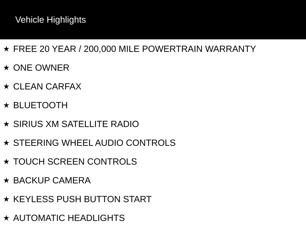 - FREE 20 YEAR / 200000 MILE POWERTRAIN WARRANTY