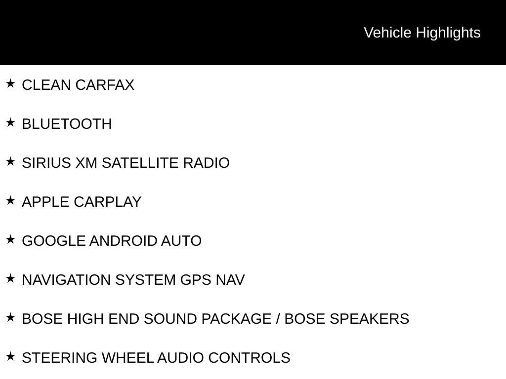 - Bose® is renowned for expert sound engineering and high-quality audio and with premium speakers positioned throughout the cabin, you'll get rich, concert-like sound