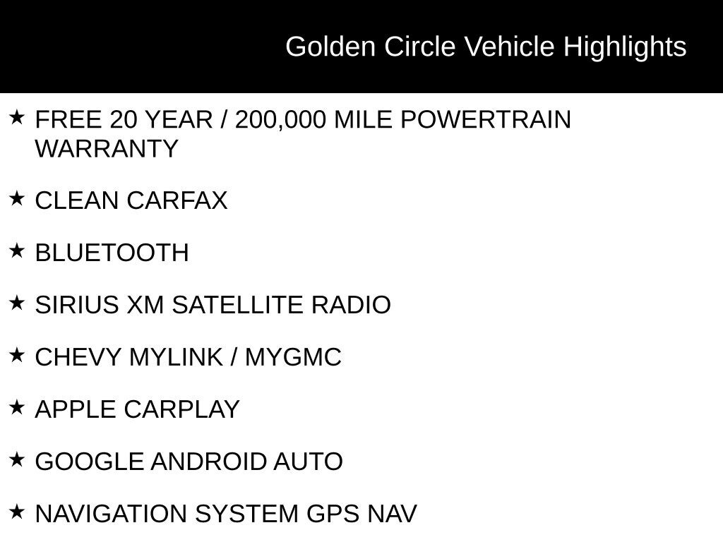 - Emergency communication system: OnStar and Chevrolet connected services capable