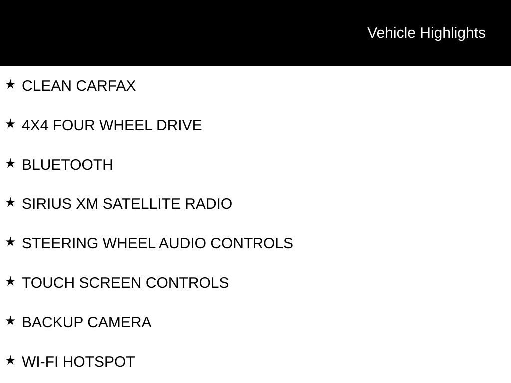 CLEAN CARFAX, 4X4 FOUR WHEEL DRIVE, BLUETOOTH, SIRIUS XM SATELLITE RADIO, STEERING WHEEL AUDIO CONTROLS, TOUCH SCREEN CONTROLS, BACKUP CAMERA, WI-FI HOTSPOT, AUTOMATIC HEADLIGHTS, TOW PACKAGE / TRAILER PACKAGE, RUNNING BOARDS, ALL WEATHER FLOOR MATS, XL SERIES, EQUIPMENT PACKAGE 101A HIGH, STX APPEARANCE PACKAGE, STX SPECIAL EDITION PACKAGE, 18 BLACK ALUMINUM W/ MACHINED EDGE WHEELS, 3.73 AXLE RATIO, 6 SPEAKERS, AIR CONDITIONING, BRAKE ASSIST, COMPASS, DELAY-OFF HEADLIGHTS, DUAL FRONT IMPACT AIRBAGS, DUAL FRONT SIDE IMPACT AIRBAGS, DUAL-ZONE ELECTRONIC CLIMATE CONTROL (DEATC), ELECTRONIC STABILITY CONTROL, FOG LAMPS, LOW TIRE PRESSURE WARNING, OCCUPANT SENSING AIRBAG, POWER GLASS SIDEVIEW MIRRORS, POWER STEERING, POWER WINDOWS, PRIVACY GLASS W/REAR DEFROST, REAR STEP BUMPER, REMOTE KEY FOB W/TAILGATE LOCK, SPEED-SENSING STEERING, STX BOX DECAL, TELESCOPING STEERING WHEEL, TILT STEERING WHEEL, VARIABLY INTERMITTENT WIPERS.