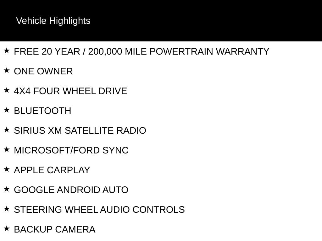 FREE 20 YEAR / 200,000 MILE POWERTRAIN WARRANTY, ONE OWNER, 4X4 FOUR WHEEL DRIVE, BLUETOOTH, SIRIUS XM SATELLITE RADIO, MICROSOFT/FORD SYNC, APPLE CARPLAY, GOOGLE ANDROID AUTO, STEERING WHEEL AUDIO CONTROLS, BACKUP CAMERA, WI-FI HOTSPOT, KEYLESS PUSH BUTTON START, AUTOMATIC HEADLIGHTS, POWER DRIVER SEAT, POWER PASSENGER SEAT, HEATED FRONT LEATHER SEATS, 3RD ROW SEAT, REMOTE START, POWER LIFTGATE, HEATED STEERING WHEEL, XLT SERIES, EQUIPMENT PACKAGE 202A, 18" 5 SPOKE SILVER PAINTED ALUMINUM WHEELS, 6 SPEAKERS, AIR CONDITIONING, AUTOMATIC TEMPERATURE CONTROL, BRAKE ASSIST, COMPASS, DELAY-OFF HEADLIGHTS, DRIVER VANITY MIRROR, EMERGENCY COMMUNICATION SYSTEM: SYNC 3 911 ASSIST, FRONT DUAL ZONE A/C, HEATED DOOR MIRRORS, LEATHER STEERING WHEEL, LOW TIRE PRESSURE WARNING, OCCUPANT SENSING AIRBAG, OUTSIDE TEMPERATURE DISPLAY, OVERHEAD CONSOLE, PANIC ALARM, PASSENGER VANITY MIRROR, POWER DOOR MIRRORS, POWER WINDOWS, REAR AIR CONDITIONING, REAR AUXILIARY CONTROLS CREDIT, REAR WINDOW DEFROSTER, REAR WINDOW WIPER, REMOTE KEYLESS ENTRY, SECURICODE KEYLESS ENTRY KEYPAD, SPEED-SENSING STEERING, SPEED-SENSITIVE WIPERS, SPLIT FOLDING REAR SEAT, TELESCOPING STEERING WHEEL, TILT STEERING WHEEL, VARIABLY INTERMITTENT WIPERS.