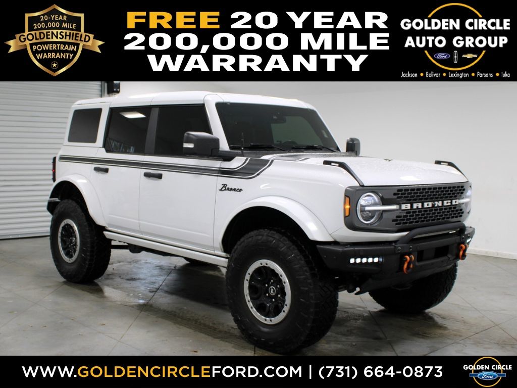 FREE 20 YEAR / 200,000 MILE POWERTRAIN WARRANTY, 4X4 FOUR WHEEL DRIVE, BLUETOOTH, SIRIUS XM SATELLITE RADIO, APPLE CARPLAY, GOOGLE ANDROID AUTO, NAVIGATION SYSTEM GPS NAV, STEERING WHEEL AUDIO CONTROLS, TOUCH SCREEN CONTROLS, BACKUP CAMERA, WIRELESS CHARGING, WI-FI HOTSPOT, KEYLESS PUSH BUTTON START, AUTOMATIC HEADLIGHTS, COLLISION AVOIDANCE SYSTEM, ADAPTIVE CRUISE CONTROL, 360 DEGREE CAMERA, HEATED FRONT LEATHER SEATS, REMOTE START, HEATED STEERING WHEEL, TOW PACKAGE / TRAILER PACKAGE, ALL WEATHER FLOOR MATS, BANG & OLUFSEN HIGH END SOUND PACKAGE, BADLANDS SERIES, EQUIPMENT PACKAGE 334A LUX PACKAGE, SASQUATCH PACKAGE, 17" BLACK HIGH GLOSS-PAINTED ALUMINUM WHEELS, 10 SPEAKERS W/SUBWOOFER, 2 SMART CHARGING USB PORTS IN DASHBOARD, AIR CONDITIONING, CARBONIZED GRAY MOLDED-IN-COLOR HARD TOP, COMPASS, DELAY-OFF HEADLIGHTS, DRIVER VANITY MIRROR, DUAL FRONT IMPACT AIRBAGS, DUAL FRONT SIDE IMPACT AIRBAGS, DUAL-ZONE ELECTRONIC AUTOMATIC TEMPERATURE CONTROL, EMERGENCY COMMUNICATION SYSTEM: 911 ASSIST, EVASIVE STEERING ASSIST, FORD PERFORMANCE HEAVY-DUTY MODULAR FRONT BUMPER, FRONT ROW TOP PANELS STORAGE BAG, HARD TOP SOUND DEADENING HEADLINER, HEATED DOOR MIRRORS, HIGH CLEARANCE FENDER FLARES, INTEGRATED ROLL-OVER PROTECTION, LOW TIRE PRESSURE WARNING, OUTSIDE TEMPERATURE DISPLAY, OVERHEAD CONSOLE, PANIC ALARM, PASSENGER VANITY MIRROR, POWER DOOR MIRRORS, POWER WINDOWS, REAR-WINDOW DEFROSTER & WASHER, REMOTE KEYLESS ENTRY, SPLIT FOLDING REAR SEAT, STEERING WHEEL MOUNTED AUDIO CONTROLS, TELESCOPING STEERING WHEEL, TILT STEERING WHEEL, VARIABLY INTERMITTENT WIPERS.