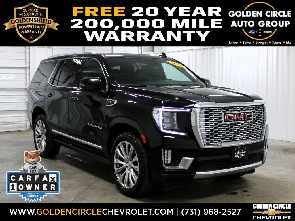 FREE 20 YEAR / 200,000 MILE POWERTRAIN WARRANTY, ONE OWNER, BLUETOOTH, SIRIUS XM SATELLITE RADIO, APPLE CARPLAY, GOOGLE ANDROID AUTO, NAVIGATION SYSTEM GPS NAV, BOSE HIGH END SOUND PACKAGE / BOSE SPEAKERS, STEERING WHEEL AUDIO CONTROLS, TOUCH SCREEN CONTROLS, BACKUP CAMERA, HOMELINK UNIVERSAL GARAGE DOOR OPENER, WIRELESS CHARGING, WI-FI HOTSPOT, HEADS-UP DISPLAY, KEYLESS PUSH BUTTON START, AUTOMATIC HEADLIGHTS, COLLISION AVOIDANCE SYSTEM, COLLISION WARNING ALERT SYSTEM, ADAPTIVE CRUISE CONTROL, POWER DRIVER SEAT, POWER PASSENGER SEAT, HEATED/COOLED LEATHER SEATS, HEATED REAR LEATHER SEATS, 2ND ROW BUCKETS, 3RD ROW SEAT, PANORAMIC SUNROOF/MOONROOF, MEMORY PACKAGE / MEMORY SEAT, REMOTE START, POWER LIFTGATE, TOW PACKAGE / TRAILER PACKAGE, POWER DEPLOYABLE RUNNING BOARDS, DENALI SERIES, PREFERRED EQUIPMENT PACKAGE 5SA, 22" BRIGHT MACHINED ALUMINUM WHEELS, 14 SPEAKERS, ADAPTIVE SUSPENSION, AIR CONDITIONING, AUTO-DIMMING DOOR MIRRORS, AUTO-DIMMING REAR-VIEW MIRROR, AUTOMATIC TEMPERATURE CONTROL, COMPASS, DELAY-OFF HEADLIGHTS, DRIVER VANITY MIRROR, EMERGENCY COMMUNICATION SYSTEM: ONSTAR AND GMC CONNECTED SERVICES CAPABLE, FRONT & REAR PARK ASSIST, FRONT DUAL ZONE A/C, FRONT FOG LIGHTS, LANE CHANGE ALERT W/SIDE BLIND ZONE ALERT, LANE KEEP ASSIST W/LANE DEPARTURE WARNING, LOW TIRE PRESSURE WARNING, OCCUPANT SENSING AIRBAG, OUTSIDE HEATED POWER-ADJUSTABLE MIRRORS, OUTSIDE TEMPERATURE DISPLAY, PANIC ALARM, PASSENGER VANITY MIRROR, POWER RELEASE 2ND ROW BUCKET SEATS, POWER WINDOWS, RAIN SENSING WIPERS, REAR AIR CONDITIONING, REAR PEDESTRIAN ALERT, REAR WINDOW DEFROSTER, REAR WINDOW WIPER, REMOTE KEYLESS ENTRY, SPEED-SENSING STEERING, STEERING WHEEL MEMORY, TELESCOPING STEERING WHEEL, TILT STEERING WHEEL, TURN SIGNAL INDICATOR MIRRORS, VARIABLY INTERMITTENT WIPERS.