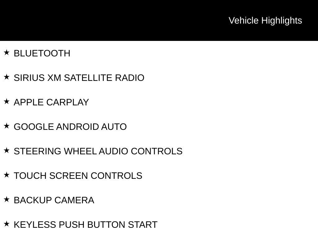 BLUETOOTH, SIRIUS XM SATELLITE RADIO, APPLE CARPLAY, GOOGLE ANDROID AUTO, STEERING WHEEL AUDIO CONTROLS, TOUCH SCREEN CONTROLS, BACKUP CAMERA, KEYLESS PUSH BUTTON START, AUTOMATIC HEADLIGHTS, POWER DRIVER SEAT, SUNROOF/MOONROOF, EX SERIES, 18" ALLOY WHEELS, 6 SPEAKERS, AIR CONDITIONING, AUTOMATIC TEMPERATURE CONTROL, BLIND SPOT INFORMATION (BSI) SYSTEM WARNING, BRAKE ASSIST, BUMPERS: BODY-COLOR, COMPASS, DELAY-OFF HEADLIGHTS, DRIVER VANITY MIRROR, DUAL FRONT IMPACT AIRBAGS, DUAL FRONT SIDE IMPACT AIRBAGS, FOUR WHEEL INDEPENDENT SUSPENSION, FRONT DUAL ZONE A/C, FRONT FOG LIGHTS, HEATED DOOR MIRRORS, LOW TIRE PRESSURE WARNING, OCCUPANT SENSING AIRBAG, OUTSIDE TEMPERATURE DISPLAY, OVERHEAD CONSOLE, PANIC ALARM, PASSENGER VANITY MIRROR, POWER DOOR MIRRORS, POWER WINDOWS, REAR WINDOW DEFROSTER, REAR WINDOW WIPER, REMOTE KEYLESS ENTRY, SPEED CONTROL, SPEED-SENSING STEERING, SPEED-SENSITIVE WIPERS, SPLIT FOLDING REAR SEAT, SPOILER, TELESCOPING STEERING WHEEL, TILT STEERING WHEEL, TURN SIGNAL INDICATOR MIRRORS, VARIABLY INTERMITTENT WIPERS.