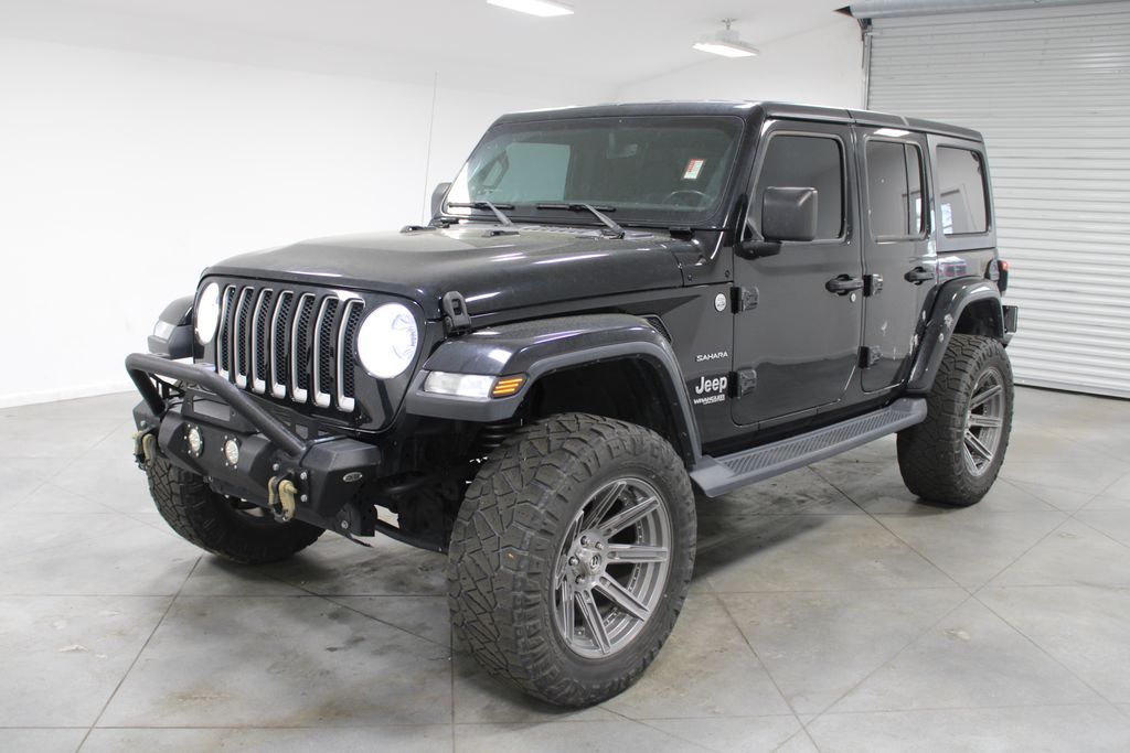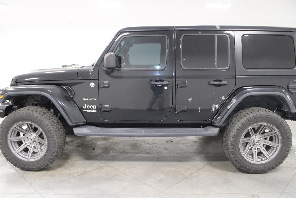ONE OWNER, CLEAN CARFAX, 4X4 FOUR WHEEL DRIVE, CUSTOM WHEELS AND TIRES, BLUETOOTH, SIRIUS XM SATELLITE RADIO, UCONNECT, APPLE CARPLAY, GOOGLE ANDROID AUTO, NAVIGATION SYSTEM GPS NAV, STEERING WHEEL AUDIO CONTROLS, TOUCH SCREEN CONTROLS, BACKUP CAMERA, HOMELINK UNIVERSAL GARAGE DOOR OPENER, KEYLESS PUSH BUTTON START, HEATED FRONT LEATHER SEATS, REMOTE START, HEATED STEERING WHEEL, RUNNING BOARDS, WEATHERTECH ALL WEATHER FLOOR MATS, UNLIMITED SAHARA SERIES, 804" RADIO & PREMIUM AUDIO GROUP, COLD WEATHER GROUP, DUAL TOP GROUP, SAFETY GROUP, 3.45 REAR AXLE RATIO, 8 SPEAKERS, AIR CONDITIONING, AUTO-DIMMING REAR-VIEW MIRROR, AUTOMATIC TEMPERATURE CONTROL, AUX BATTERY, BLIND SPOT & CROSS PATH DETECTION, BRAKE ASSIST, COMPASS, DELAY-OFF HEADLIGHTS, DRIVER VANITY MIRROR, DUAL FRONT IMPACT AIRBAGS, DUAL FRONT SIDE IMPACT AIRBAGS, FRONT BUCKET SEATS, FRONT DUAL ZONE A/C, FRONT FOG LIGHTS, FULLY AUTOMATIC HEADLIGHTS, HEATED DOOR MIRRORS, HEAVY DUTY SUSPENSION W/GAS SHOCKS, LOW TIRE PRESSURE WARNING, OCCUPANT SENSING AIRBAG, OUTSIDE TEMPERATURE DISPLAY, PANIC ALARM, PASSENGER VANITY MIRROR, POWER DOOR MIRRORS, POWER WINDOWS, PREMIUM BLACK SUNRIDER SOFT TOP W/DUAL TOP GROUP, REMOTE KEYLESS ENTRY, TELESCOPING STEERING WHEEL, TILT STEERING WHEEL, VARIABLY INTERMITTENT WIPERS.
