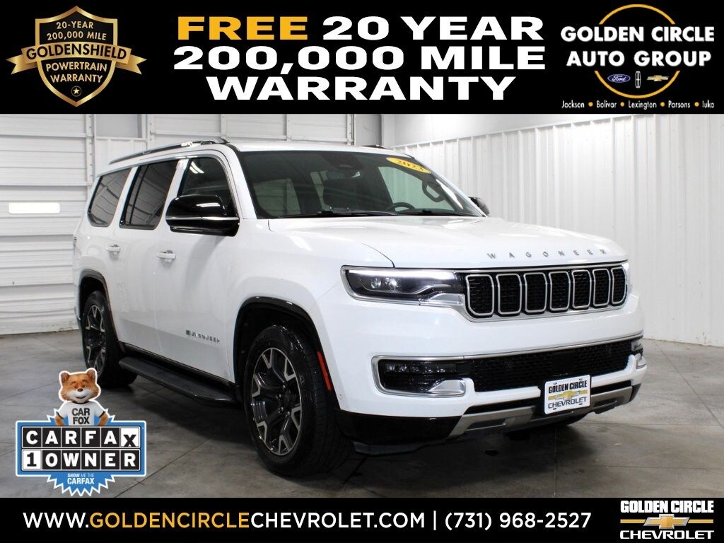 WHEN COMBINING PRICE AND MILEAGA DATA, THIS WAGONEER SERIES III IS THE BEST VALUE IN 300 MILES AND FREE 20 YEAR / 200,000 MILE POWERTRAIN WARRANTY, ONE OWNER, CLEAN CARFAX, 4X4 FOUR WHEEL DRIVE, BLUETOOTH, SIRIUS XM SATELLITE RADIO, NAVIGATION SYSTEM GPS NAV, STEERING WHEEL AUDIO CONTROLS, TOUCH SCREEN CONTROLS, BACKUP CAMERA, HOMELINK UNIVERSAL GARAGE DOOR OPENER, WIRELESS CHARGING, WI-FI HOTSPOT, HEADS-UP DISPLAY, KEYLESS PUSH BUTTON START, POWER DRIVER SEAT, POWER PASSENGER SEAT, HEATED/COOLED LEATHER SEATS, HEATED REAR LEATHER SEATS, 3RD ROW SEAT, PANORAMIC SUNROOF/MOONROOF, MEMORY PACKAGE / MEMORY SEAT, REMOTE START, POWER LIFTGATE, TOW PACKAGE / TRAILER PACKAGE, RUNNING BOARDS, ALPINE HIGH END SOUND PACKAGE, SERIES III, PREFERRED EQUIPMENT PACKAGE, QUICK ORDER PACKAGE 25N, 20" ALUMINUM WHEELS, 10 SPEAKERS, ADJUSTABLE PEDALS, AIR CONDITIONING, ANTI-WHIPLASH FRONT HEAD RESTRAINTS, AUTO-DIMMING DOOR MIRRORS, AUTO-DIMMING REAR-VIEW MIRROR, AUTO-LEVELING SUSPENSION, AUTOMATIC TEMPERATURE CONTROL, BRAKE ASSIST, COMPASS, DELAY-OFF HEADLIGHTS, DRIVER VANITY MIRROR, EMERGENCY COMMUNICATION SYSTEM: AUTOMATIC SOS CALL, FRONT CENTER ARMREST W/STORAGE, FRONT DUAL ZONE A/C, FRONT FOG LIGHTS, GENUINE WOOD CONSOLE INSERT, GENUINE WOOD DASHBOARD INSERT, HEATED DOOR MIRRORS, LEATHER TRIMMED BUCKET SEATS, LOW TIRE PRESSURE WARNING, OCCUPANT SENSING AIRBAG, OUTSIDE TEMPERATURE DISPLAY, PANIC ALARM, PASSENGER VANITY MIRROR, POWER ADJUSTABLE FRONT HEAD RESTRAINTS, POWER DOOR MIRRORS, POWER WINDOWS, QUADRA-LIFT AIR SUSPENSION, RAIN SENSING WIPERS, REAR AIR CONDITIONING, REAR DUAL ZONE A/C, REAR WINDOW DEFROSTER, REAR WINDOW WIPER, RECLINING 3RD ROW SEAT, REMOTE KEYLESS ENTRY, SPEED CONTROL, SPEED-SENSING STEERING, SPEED-SENSITIVE WIPERS, SPLIT FOLDING REAR SEAT, TELESCOPING STEERING WHEEL, TILT STEERING WHEEL, TURN SIGNAL INDICATOR MIRRORS, VARIABLY INTERMITTENT WIPERS.