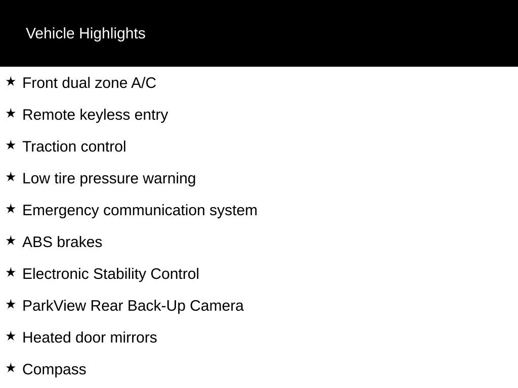 - Adaptive Cruise Control: Adaptive Cruise Control w/Stop & Go