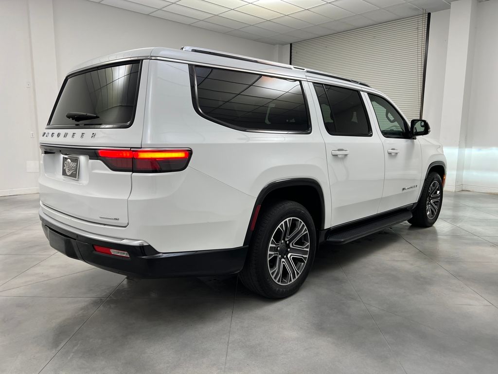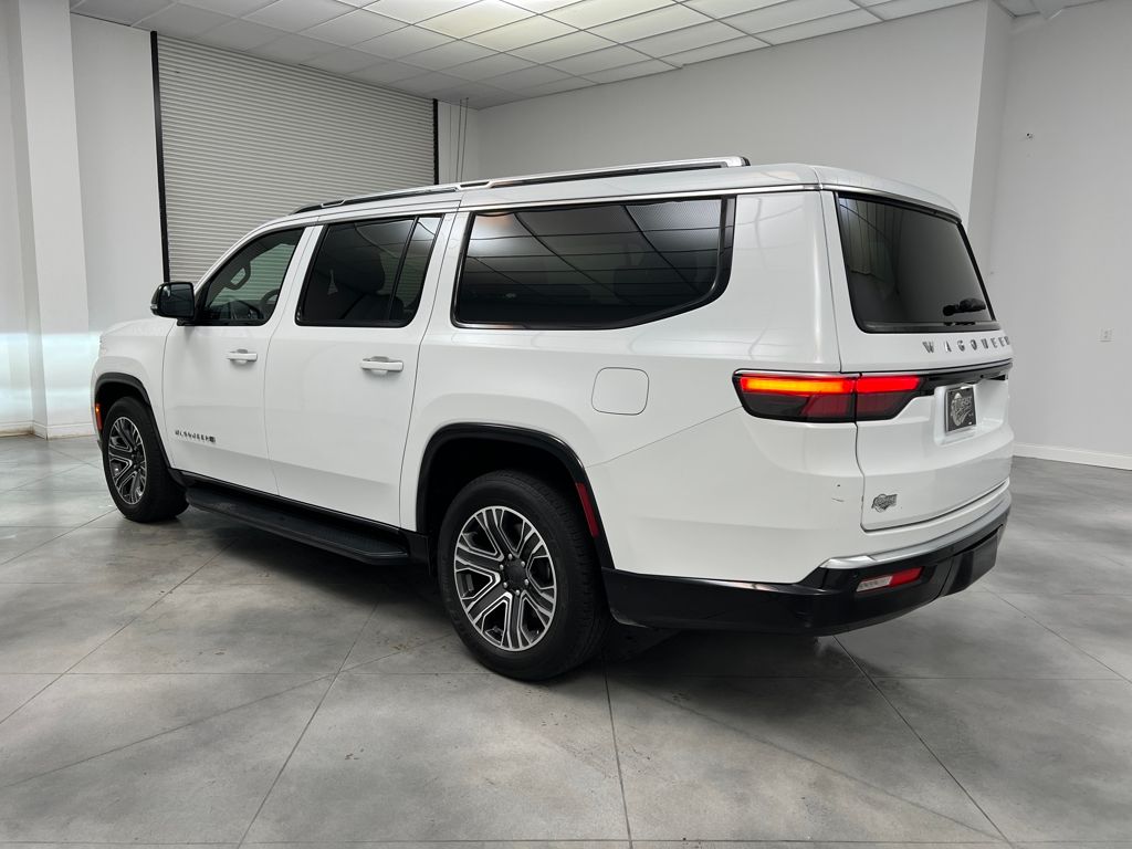 Quick Order Package 25J, 10 Speakers, 3.55 Rear Axle Ratio, 3rd row seats: bench, 4-Wheel Disc Brakes, ABS brakes, Adjustable pedals, Air Conditioning, Alloy wheels, AM/FM radio: SiriusXM with 360L, Anti-whiplash front head restraints, Apple CarPlay/Android Auto, Audio memory, Auto-dimming door mirrors, Auto-dimming Rear-View mirror, Auto-leveling suspension, Automatic temperature control, Brake assist, Bumpers: body-color, Compass, Delay-off headlights, Driver door bin, Driver vanity mirror, Driver's Seat Mounted Armrest, Dual front impact airbags, Dual front side impact airbags, Electronic Stability Control, Emergency communication system: Wagoneer Connect, Exterior Parking Camera Rear, Four wheel independent suspension, Front anti-roll bar, Front Bucket Seats, Front Center Armrest w/Storage, Front dual zone A/C, Front fog lights, Front reading lights, Fully automatic headlights, Garage door transmitter, Genuine wood console insert, Genuine wood dashboard insert, Genuine wood door panel insert, Heated door mirrors, Heated front seats, Heated steering wheel, Illuminated entry, Knee airbag, Leather Trimmed Bucket Seats, Low tire pressure warning, Memory seat, Navigation System, Normal Duty Suspension, Occupant sensing airbag, Outside temperature display, Overhead airbag, Overhead console, Panic alarm, Passenger door bin, Passenger seat mounted armrest, Passenger vanity mirror, Pedal memory, Power adjustable front head restraints, Power door mirrors, Power driver seat, Power Liftgate, Power passenger seat, Power steering, Power windows, Radio data system, Radio: Uconnect 5 Nav w/10.1" Display, Rain sensing wipers, Rear air conditioning, Rear anti-roll bar, Rear reading lights, Rear seat center armrest, Rear window defroster, Rear window wiper, Reclining 3rd row seat, Remote keyless entry, Security system, Speed control, Speed-sensing steering, Speed-Sensitive Wipers, Split folding rear seat, Steering wheel memory, Steering wheel mounted audio controls, Tachometer, Telescoping steering wheel, Tilt steering wheel, Traction control, Trip computer, Turn signal indicator mirrors, Variably intermittent wipers, Ventilated front seats, Voltmeter, and Wheels: 20" x 9.0" Premium 2 Aluminum.