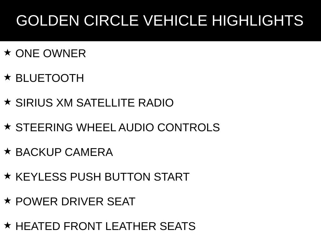 ONE OWNER, BLUETOOTH, SIRIUS XM SATELLITE RADIO, STEERING WHEEL AUDIO CONTROLS, BACKUP CAMERA, KEYLESS PUSH BUTTON START, POWER DRIVER SEAT, HEATED FRONT LEATHER SEATS, TOURING SERIES, 19" ALUMINUM ALLOY WHEELS, 6 SPEAKERS, AIR CONDITIONING, AUTOMATIC TEMPERATURE CONTROL, BRAKE ASSIST, DELAY-OFF HEADLIGHTS, DRIVER VANITY MIRROR, DUAL FRONT IMPACT AIRBAGS, DUAL FRONT SIDE IMPACT AIRBAGS, EMERGENCY COMMUNICATION SYSTEM, FOUR WHEEL INDEPENDENT SUSPENSION, FRONT DUAL ZONE A/C, OCCUPANT SENSING AIRBAG, OUTSIDE TEMPERATURE DISPLAY, OVERHEAD CONSOLE, PANIC ALARM, PASSENGER VANITY MIRROR, POWER DOOR MIRRORS, POWER WINDOWS, RAIN SENSING WIPERS, REAR WINDOW DEFROSTER, REAR WINDOW WIPER, REMOTE KEYLESS ENTRY, SPEED CONTROL, SPEED-SENSING STEERING, SPLIT FOLDING REAR SEAT, SPOILER, TELESCOPING STEERING WHEEL, TILT STEERING WHEEL, TRACTION CONTROL, TURN SIGNAL INDICATOR MIRRORS, VARIABLY INTERMITTENT WIPERS.