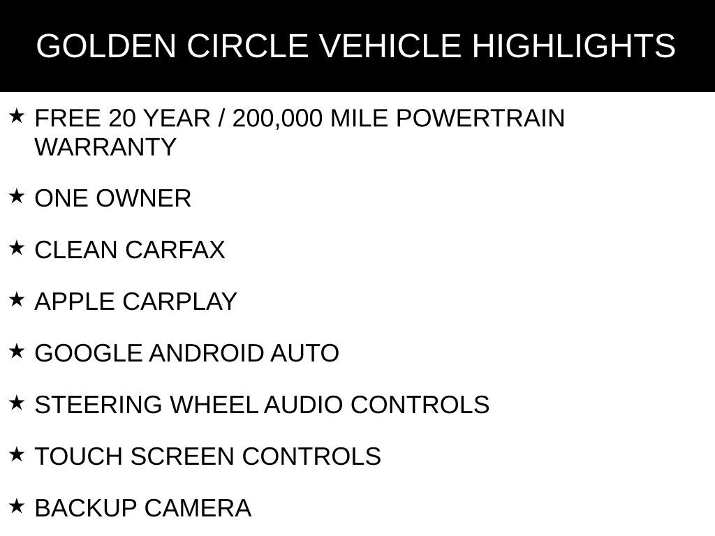 FREE 20 YEAR / 200,000 MILE POWERTRAIN WARRANTY, ONE OWNER, CLEAN CARFAX, APPLE CARPLAY, GOOGLE ANDROID AUTO, STEERING WHEEL AUDIO CONTROLS, TOUCH SCREEN CONTROLS, BACKUP CAMERA, KEYLESS PUSH BUTTON START, SPORT SERIES, 18" STYLED ALLOY WHEELS, 6 SPEAKERS, AIR CONDITIONING, ANTI-WHIPLASH FRONT HEAD RESTRAINTS, AUTO-DIMMING REAR-VIEW MIRROR, AUTOMATIC TEMPERATURE CONTROL, BLIND SPOT WARNING, BRAKE ASSIST, DELAY-OFF HEADLIGHTS, DUAL FRONT IMPACT AIRBAGS, DUAL FRONT SIDE IMPACT AIRBAGS, LEATHER SHIFT KNOB, LEATHER STEERING WHEEL, LOW TIRE PRESSURE WARNING, OCCUPANT SENSING AIRBAG, OUTSIDE TEMPERATURE DISPLAY, PANIC ALARM, PASSENGER VANITY MIRROR, POWER WINDOWS, REAR WINDOW DEFROSTER, REMOTE KEYLESS ENTRY, SECURITY SYSTEM, SPEED CONTROL, SPEED-SENSING STEERING, TELESCOPING STEERING WHEEL, TILT STEERING WHEEL, TURN SIGNAL INDICATOR MIRRORS, VARIABLY INTERMITTENT WIPERS.