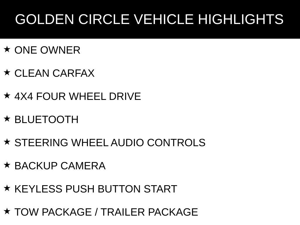 ONE OWNER, CLEAN CARFAX, 4X4 FOUR WHEEL DRIVE, BLUETOOTH, STEERING WHEEL AUDIO CONTROLS, BACKUP CAMERA, KEYLESS PUSH BUTTON START, TOW PACKAGE / TRAILER PACKAGE, INTEGRATED TRAILER BRAKE CONTROLLER, RUNNING BOARDS, TRADESMAN SERIES, QUICK ORDER PACKAGE 2HA TRADESMAN, TRADESMAN LEVEL 1 EQUIPMENT GROUP, 3.73 AXLE RATIO, 40/20/40 SPLIT BENCH SEAT, 6 SPEAKERS, AIR CONDITIONING, BRAKE ASSIST, CENTER HUB, COMPASS, DELAY-OFF HEADLIGHTS, ELECTRONICALLY CONTROLLED THROTTLE, EMERGENCY COMMUNICATION SYSTEM: SIRIUSXM GUARDIAN, FRONT CENTER ARMREST W/STORAGE, FRONT LICENSE PLATE BRACKET, GLOBAL TELEMATICS BOX MODULE (TBM), LOW TIRE PRESSURE WARNING, OCCUPANT SENSING AIRBAG, OUTSIDE TEMPERATURE DISPLAY, OVERHEAD CONSOLE, PARKVIEW REAR BACK-UP CAMERA, PASSENGER DOOR BIN, PASSENGER VANITY MIRROR, POWER WINDOWS, REAR FOLDING SEAT, REAR STEP BUMPER, STORAGE TRAY, TILT STEERING WHEEL, TOW HOOKS, TRAILER BRAKE CONTROL, VARIABLY INTERMITTENT WIPERS, WHEELS: 18" X 8.0" STEEL.