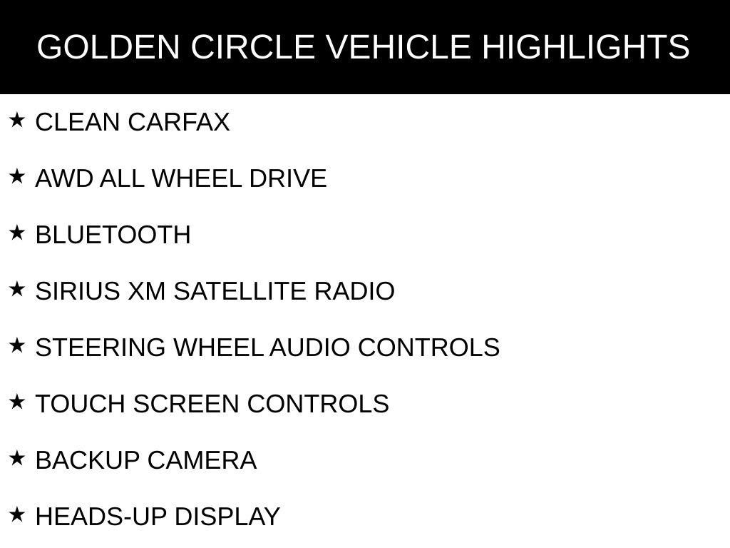 CLEAN CARFAX, AWD ALL WHEEL DRIVE, BLUETOOTH, SIRIUS XM SATELLITE RADIO, STEERING WHEEL AUDIO CONTROLS, TOUCH SCREEN CONTROLS, BACKUP CAMERA, HEADS-UP DISPLAY, KEYLESS PUSH BUTTON START, HEATED FRONT LEATHER SEATS, SUNROOF/MOONROOF, MEMORY PACKAGE / MEMORY SEAT, HARMAN/KARDON HIGH END SOUND PACKAGE, 2.5I SERIES, POPULAR EQUIPMENT PACKAGE #5, STANDARD MODEL, 18" ALUMINUM ALLOY W/ MACHINED FINISHED WHEELS, 12 SPEAKERS, AHA, AIR CONDITIONING, ANTI-WHIPLASH FRONT HEAD RESTRAINTS, AUTO-DIMMING REAR-VIEW MIRROR, AUTOMATIC TEMPERATURE CONTROL, CD PLAYER, COMPASS, DRIVER VANITY MIRROR, ELECTRONIC STABILITY CONTROL, FRONT DUAL ZONE A/C, FRONT FOG LIGHTS, HEATED DOOR MIRRORS, LOW TIRE PRESSURE WARNING, OCCUPANT SENSING AIRBAG, OUTSIDE TEMPERATURE DISPLAY, OVERHEAD CONSOLE, PASSENGER VANITY MIRROR, POWER DOOR MIRRORS, POWER PASSENGER SEAT, POWER STEERING, POWER WINDOWS, REAR WINDOW DEFROSTER, REAR WINDOW WIPER, REMOTE KEYLESS ENTRY, SECURITY SYSTEM, SMARTPHONE INTEGRATION, SPEED-SENSING STEERING, STEERING-WHEEL PADDLE-SHIFT CONTROL SWITCHES, TELESCOPING STEERING WHEEL, TILT STEERING WHEEL, TURN SIGNAL INDICATOR MIRRORS, VARIABLY INTERMITTENT WIPERS.