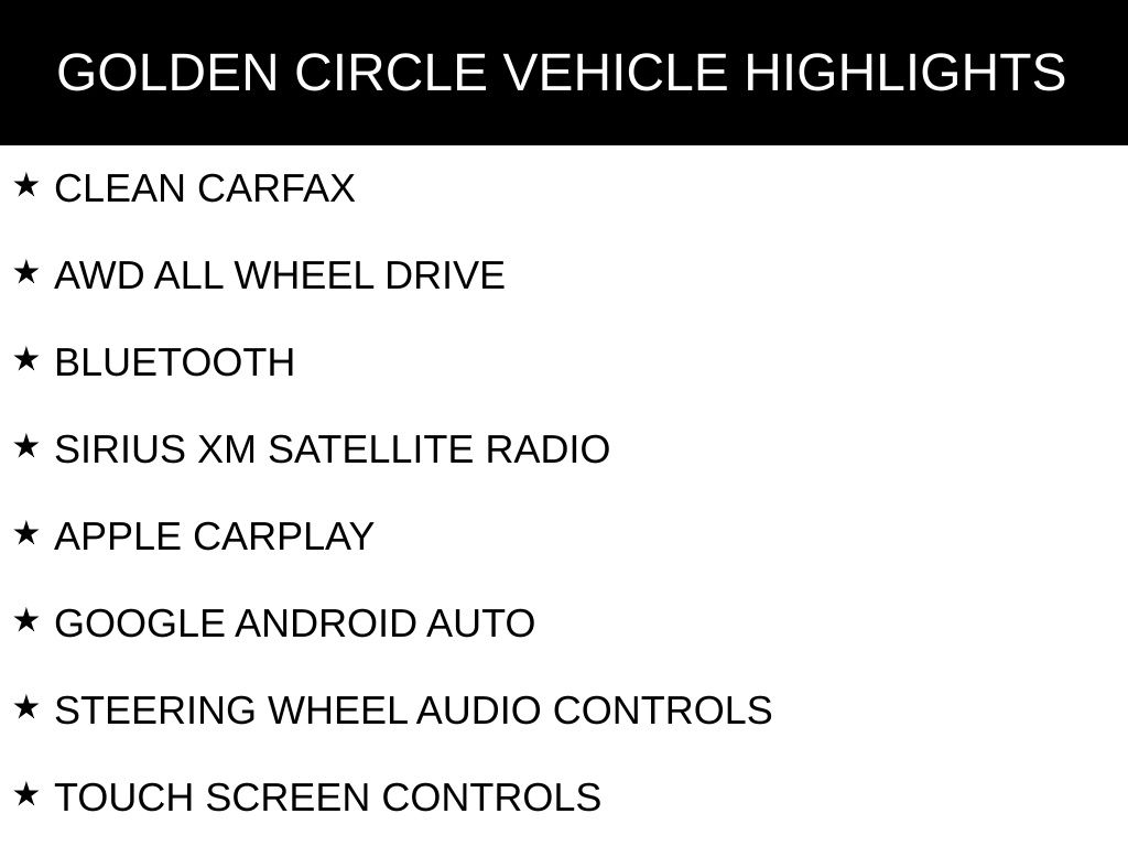 CLEAN CARFAX, AWD ALL WHEEL DRIVE, BLUETOOTH, SIRIUS XM SATELLITE RADIO, APPLE CARPLAY, GOOGLE ANDROID AUTO, STEERING WHEEL AUDIO CONTROLS, TOUCH SCREEN CONTROLS, BACKUP CAMERA, KEYLESS PUSH BUTTON START, POWER DRIVER SEAT, HEATED FRONT LEATHER SEATS, SUNROOF/MOONROOF, MEMORY PACKAGE / MEMORY SEAT, POWER LIFTGATE, ALL WEATHER FLOOR MATS, XLE PREMIUM SERIES, XLE PREMIUM PACKAGE, XLE PREMIUM GRADE WEATHER PACAKGE, 17" 5-SPOKE SILVER ALLOY WHEELS, 3 SPOKE LEATHER HEATED STEERING WHEEL, 6 SPEAKERS, AIR CONDITIONING, AUTOMATIC TEMPERATURE CONTROL, BRAKE ASSIST, DELAY-OFF HEADLIGHTS, DRIVER VANITY MIRROR, DUAL FRONT IMPACT AIRBAGS, DUAL FRONT SIDE IMPACT AIRBAGS, EMERGENCY COMMUNICATION SYSTEM: SAFETY CONNECT WITH 1-YEAR TRIAL, FOUR WHEEL INDEPENDENT SUSPENSION, FRONT DUAL ZONE A/C, FRONT SEAT HEATING, HEATED DOOR MIRRORS, LOW TIRE PRESSURE WARNING, OCCUPANT SENSING AIRBAG, OUTSIDE TEMPERATURE DISPLAY, OVERHEAD CONSOLE, PANIC ALARM, PASSENGER VANITY MIRROR, POWER DOOR MIRRORS, POWER WINDOWS, RAIN SENSING FRONT WIPERS, REAR WINDOW DEFROSTER, REAR WINDOW WIPER, REMOTE KEYLESS ENTRY, SPEED CONTROL, SPEED-SENSING STEERING, SPLIT FOLDING REAR SEAT, TELESCOPING STEERING WHEEL, TILT STEERING WHEEL, TURN SIGNAL INDICATOR MIRRORS, VARIABLY INTERMITTENT WIPERS.