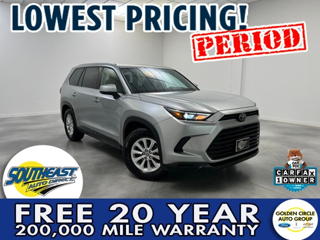 ABS brakes, Active Cruise Control, Alloy wheels, Electronic Stability Control, Front dual zone A/C, Heated door mirrors, Heated Front Seats, Heated front seats, Illuminated entry, Low tire pressure warning, Navigation System, Power Liftgate, Remote keyless entry, Traction control, 18" Aluminum Alloy Wheels, 3.33 Axle Ratio, 3rd row seats: split-bench, 4-Wheel Disc Brakes, 6 Speakers, Air Conditioning, AM/FM radio: SiriusXM, Auto High-beam Headlights, Auto-dimming Rear-View mirror, Automatic temperature control, Brake assist, Bumpers: body-color, Delay-off headlights, Driver door bin, Driver vanity mirror, Dual front impact airbags, Dual front side impact airbags, Emergency communication system: Safety Connect (up to 10-year trial subscription), Exterior Parking Camera Rear, Four wheel independent suspension, Front anti-roll bar, Front Bucket Seats, Front Center Armrest, Front reading lights, Fully automatic headlights, Garage door transmitter: HomeLink, Knee airbag, Leather Shift Knob, Leather steering wheel, Navigation system: Drive Connect Cloud Navigation (1-year trial subscription), Occupant sensing airbag, Outside temperature display, Overhead airbag, Overhead console, Panic alarm, Passenger door bin, Passenger vanity mirror, Power door mirrors, Power driver seat, Power passenger seat, Power steering, Power windows, Radio: 12.3" Toyota Audio Multimedia, Rear air conditioning, Rear anti-roll bar, Rear reading lights, Rear window defroster, Rear window wiper, Reclining 3rd row seat, Security system, SofTex Seat Trim, Speed control, Speed-sensing steering, Split folding rear seat, Spoiler, Steering wheel mounted audio controls, Tachometer, Telescoping steering wheel, Tilt steering wheel, Trip computer, Turn signal indicator mirrors, and Variably intermittent wipers.